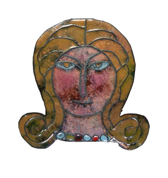Female jewellery - pendant in the shape of a women's head on a chain.