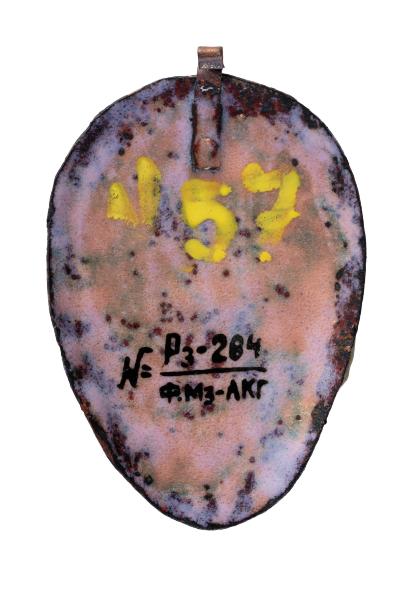 Yaroslava Muzyka (Stefanovych) was born in Zaliztsi in Ternopil region on January 10, 1894. She died on November 24, 1973, in Lviv. She was an artist of diverse preferences and talent. She turned to graphic art – linocuts, woodcuts, drypoint, monotype; painting – oil, tempera, gouache, encaustic; mosaic and enamel, on glass, grattage on gold or silver foil, batik, embossing on leather, embossing on metal. She studied drawing and painting at Leonard Podhorodecki Free Academy of Fine Arts in Lviv and André Lhote Academy in Paris. In 1928, she trained as an art restorer at the Central State Restoration Workshop of Ihor Grabar in Moscow. She also worked at the National Museum in the restoration workshop. Yaroslava Muzyka was one of the founders of the Association of Independent Ukrainian Artists (AIUA), a Ukrainian public art organization that operated in Lviv from 1931–1939. In 1937, the artist learned the difficult technique of burning enamel objects by attending Mariia Dolnytska classes in Lviv. In addition, she studied on her own using French and German enamelling manuals. The artist worked in the technique of bulk (scenic, painted) and cloisonne enamel. Her favourite subjects in the enamel works were Hutsul demonology, pagan mythology, beliefs of ancient Slavs, the works by Taras Shevchenko, images of animals, and female portraits.