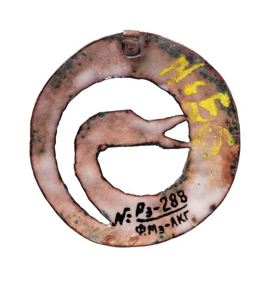 Yaroslava Muzyka (Stefanovych) was born in Zaliztsi in Ternopil region on January 10, 1894. She died on November 24, 1973, in Lviv. She was an artist of diverse preferences and talent. She turned to graphic art – linocuts, woodcuts, drypoint, monotype; painting – oil, tempera, gouache, encaustic; mosaic and enamel, on glass, grattage on gold or silver foil, batik, embossing on leather, embossing on metal. She studied drawing and painting at Leonard Podhorodecki Free Academy of Fine Arts in Lviv and André Lhote Academy in Paris. In 1928, she trained as an art restorer at the Central State Restoration Workshop of Ihor Grabar in Moscow. She also worked at the National Museum in the restoration workshop. Yaroslava Muzyka was one of the founders of the Association of Independent Ukrainian Artists (AIUA), a Ukrainian public art organization that operated in Lviv from 1931–1939. In 1937, the artist learned the difficult technique of burning enamel objects by attending Mariia Dolnytska classes in Lviv. In addition, she studied on her own using French and German enamelling manuals. The artist worked in the technique of bulk (scenic, painted) and cloisonne enamel. Her favourite subjects in the enamel works were Hutsul demonology, pagan mythology, beliefs of ancient Slavs, the works by Taras Shevchenko, images of animals, and female portraits.
