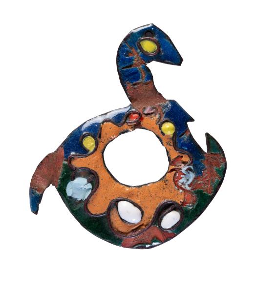 Yaroslava Muzyka (Stefanovych) was born in Zaliztsi in Ternopil region on January 10, 1894. She died on November 24, 1973, in Lviv. She was an artist of diverse preferences and talent. She turned to graphic art – linocuts, woodcuts, drypoint, monotype; painting – oil, tempera, gouache, encaustic; mosaic and enamel, on glass, grattage on gold or silver foil, batik, embossing on leather, embossing on metal. She studied drawing and painting at Leonard Podhorodecki Free Academy of Fine Arts in Lviv and André Lhote Academy in Paris. In 1928, she trained as an art restorer at the Central State Restoration Workshop of Ihor Grabar in Moscow. She also worked at the National Museum in the restoration workshop. Yaroslava Muzyka was one of the founders of the Association of Independent Ukrainian Artists (AIUA), a Ukrainian public art organization that operated in Lviv from 1931–1939. In 1937, the artist learned the difficult technique of burning enamel objects by attending Mariia Dolnytska classes in Lviv. In addition, she studied on her own using French and German enamelling manuals. The artist worked in the technique of bulk (scenic, painted) and cloisonne enamel. Her favourite subjects in the enamel works were Hutsul demonology, pagan mythology, beliefs of ancient Slavs, the works by Taras Shevchenko, images of animals, and female portraits.