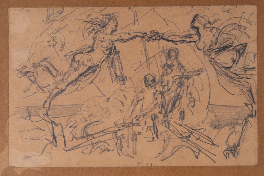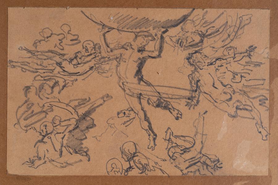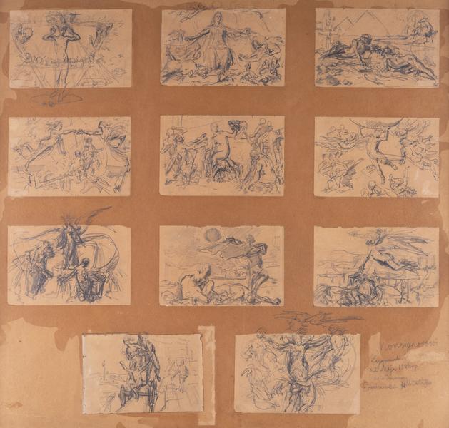 Цикл картин «Тріумфу прогресу» з’явився у «Львівській політехніці» після того, як у вересні 1880 року університет відвідав австрійський імператор Франц Йосиф І. Правитель був вражений високим рівнем освіти та подарував ці 11 полотен, розмір кожного становить 230х300см. Яскраво виражені біблійні мотиви поєднуються в цих творах із наукою та технологічними винаходами. Основна ідея циклу – неоднозначність явища прогресу, котре одночасно і лякало, і надихало суспільство того часу. Малі композиційні ескізи, за якими пізніше були створені великі полотна, Ян Матейко розробив сам. Самі ж картини у «Львівській політехніці» виготовлялись за участю майстрів Краківської художньої школи протягом 1887–1891 рр. Зокрема, над картинами трудилися й учні Яна Матейка: Ю. Нежинский, Т. Лісевич, В. Лускін, Л. Стажинський. Розміри рисунків: Г-V-115, 12х15,3 см/ Г-V-116, 10,5х15,4 см / Г-V-117, 9,8х15 см / Г-V-118, 10х15,3 см / Г-V-119, 10х15,4 см / Г-V-120, 10х15,3 см / Г-V-121, 12х15,4 см / Г-V-122, 10,5х15,4 см / Г-V-123, 10х15 см / Г-V-124, 10х14,8 см / Г-V-125, 12,5х15,5 см.