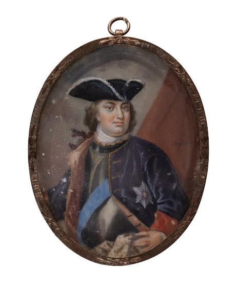 Поясне зображення чоловіка в металевих обладунках, поверх яких голуба орденська стрічка й синій камзол, підшитий червоним, на якому справа зірка Ордена Білого Орла. Військовий капелюх tricorn, обшитий по краю білим пір’ям, та червона драперія чи плащ, що звисає праворуч, із хутром горностая внизу, свідчать про високий сан портретованого. Орденом Білого Орла Моріц Саксонський (позашлюбний син Августа Сильного) був нагороджений у 1719 р. В 1746 р. він став головним маршалом Франції.