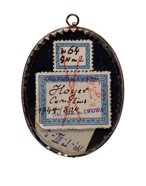 Справа на рівні плеча портретованого авторський підпис: Hoyer