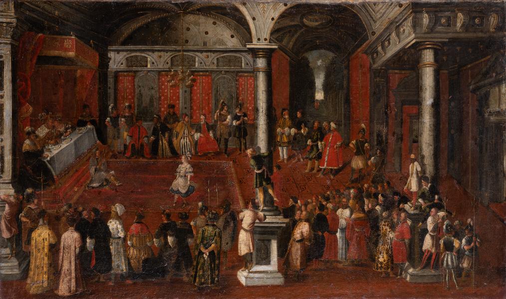 Шимону Богушовичу приписують картину «Танець Саломеї», створену за біблійним сюжетом із Нового Завіту. Сцена багатофігурної композиції відбувається в інтер’єрі багатого залу, розділеного колонами. Ліворуч – цар Ірод за столом захоплено спостерігає за танцем Саломеї, доньки Іродіади. На молоду дівчину звернуті погляди всіх присутніх у залі, деякі люди навіть стоять на підвищенні – на базах колон. Фігури людей змальовані у динамічних позах і складних ракурсах. Тут можна побачити велике розмаїття персонажів у різних костюмах із багатим декором. Картина виконана у декоративній колірній гамі з перевагою динамічних червоних та чорних кольорів.