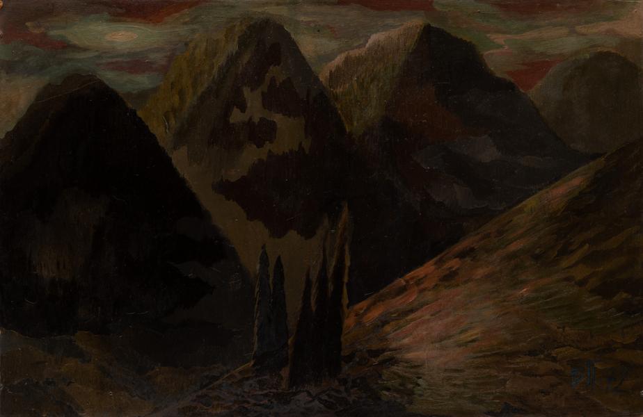 Гірський нічний пейзаж з колекції Львівської національної галереї мистецтв імені Б.Г. Возницького належить до характерних творів Василя Польового ранніх 1970-х років з властивими їм технічними експериментами. Це вплинуло на колорит і оптичні характеристики зображення, виразно помітні лише в процесі огляду оригіналу роботи під різними кутами освітлення. На площині зображено гірське пасмо, що за специфікою форми групи гір та ймовірною точкою, з якої зроблено ескіз, належить до Сколівських Бескидів. Для досягнення специфічного складного колориту автор використав фарби, близькі до темперних, а також оригінальні емульсії з металізованими фарбами бронзових відтінків. Це дозволяє припустити, що автора інспірували більш ранні історичні приклади способів відтворення особливого освітлення у темну пору доби, за умови наявності інтенсивного місячного сяйва. До вагомих характеристик твору належить вирішення складного живописного виконання своєрідного за температурою кольору «нічного» пейзажу, а крім того формування емоційно насиченої, містичної атмосфери. Вартий уваги монументальний, практично епічний підхід до оповідальності у творі, антропний вимір якого присутній винятково в точці зору, з якої малює автор. Перед глядачем постає ситуація, у якій змога до співтворення є базовою характеристикою й дозволяє виводити сприйняття твору з власного візуального досвіду, емоційних та інтелектуальних особливостей.