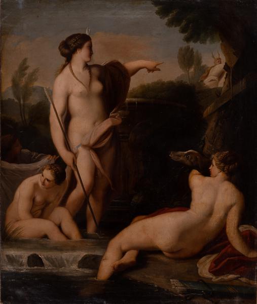 За римською міфологією Діана – богиня природи й полювання, уособлення місяця. Діана ототожнювалася з грецькою Артемідою і богинею мороку та чаклунства Гекатою. Діану супроводжував епітет «богиня трьох шляхів», що тлумачився як знак її потрійної влади: на піднебессі, на землі й під землею. Богиня також славилась опікою полонених Римом латинян, плебеїв і рабів. Річниця заснування храму Діани на одному із сімох римських горбів Авентіні вважалась їх святом, це сприяло популярності богині серед нижчих класів. З цим храмом пов’язаний переказ про незвичайну корову: за передбаченням, той, хто принесе її в жертву богині у святилищі на Авентіні, забезпечить своєму місту владу над усією Італією. Коли цар Сервій Туллій дізнався про передбачення, він хитрістю здобув корову, приніс тварину в жертву Діані і прикрасив храм її рогами. З Діаною також пов’язаний міф про нещасного мисливця Актеона. Хлопець побачив чарівну богиню Артеміду-Діану, що купалась. У гніві вона перетворила його на оленя, якого потім розірвали його власні пси.