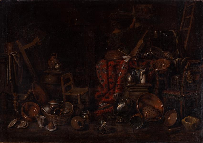 Джованні Доменіко Валентіно (Рим, бл. 1630 – Імола, бл. 1708) – італійський художник пізнього бароко, який спеціалізувався на поєднаннях жанрів живопису та натюрморту. Митець майже все своє життя проживав і працював у Римі, за винятком 1680–1681 років, коли працював в Імолі та Равенні. Своє натхнення черпав у фламандських художників Вічного міста. Використання скандинавських моделей у розвитку образотворчого жанру з інтер’єрними сценами та елементами натюрморту здобуло велику популярність серед замовників, що призвело до майже серійного виробництва «інтер’єрів», завжди виконаних із шармом.