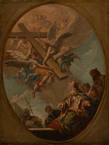 Ескіз «Видіння св. Олени» є одним із трьох творів із циклу про життя св. Олени. Він був виконаний Гаспаре Діціані для плафона Скуоли дель Він при церкві Сан Сільвестро у Венеції, і є однією з найкращих робіт художника. На ескізі представлений момент видіння Хреста Господнього імператриці Олені. Таке театралізоване, емоційне, фантазійне зображення сцени характерне для естетики рококо. Свята Олена, мати Костянтина Великого, першого християнського імператора, народилася 250 року нашої ери у Віфінії. Вона одружилася з імператором Констанцієм, проте той розлучився з нею і невдовзі уклав шлюб з іншою жінкою. Разом із сином Олену відправили до двору Діоклетіана. З раптовою смертю Констанція 306 року Костянтина оголосили імператором, а Олена 325 року отримала титул Августи. Вона займалася будівництвом та церковним благоустроєм. У 326 році Олена вирушила до Палестини шукати найбільшу християнську реліквію. Там вона натрапила на язичницький храм Венери, який наказала зруйнувати. На місці храму почали розкопки, під час яких було знайдено три хрести. Щоб переконатися, який із хрестів є істинним, Олена наказала по черзі прикладати їх до недужих. Їй трапилася жінка зі смертельною хворобою. Приклавши перші два хрести, нічого не сталося. Тільки після третього жінка зцілилася. Імператриця Олена визнала цей хрест Істинним – тим, на якому був розп’ятий Син Божий. Тоді Костянтин доручив побудувати храм для вшанування Христа – Гріб Господній.