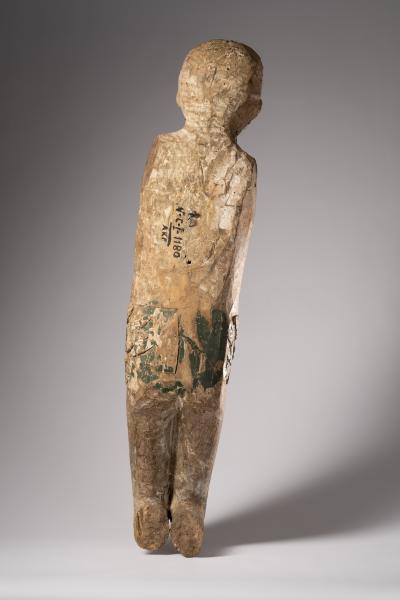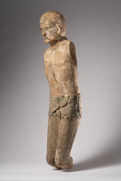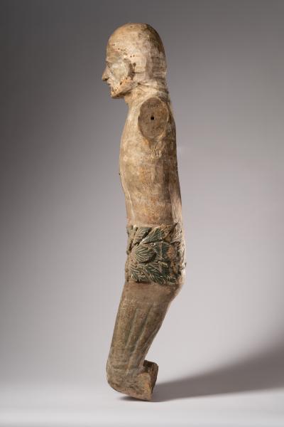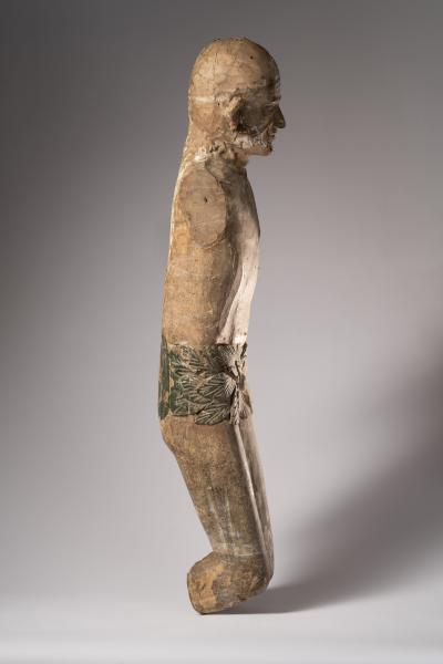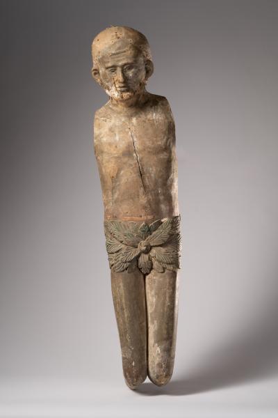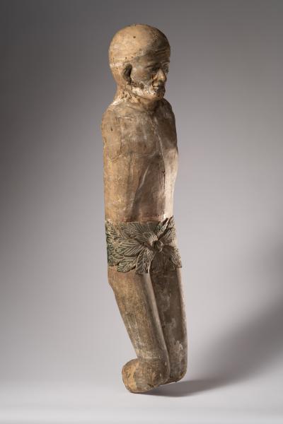 Скульптурні зображення святого Онуфрія є досить поширеними серед творів народних майстрів. Робота тисменицького майстра демонструє святого кремезним чоловіком з атлетичним торсом, сповненого фізичних сил. Добре відтворене різцем скульптора тіло святого. Онуфрій стоїть на колінах, основна увага приділена його обличчю, поглинутому молитвою. Детально пророблений кожен елемент: зведені брови, прикриті повіками глибоко посаджені очі, міцно стулені вуста й розділене горизонтальними лініями зморшок чоло. Декоративним акцентом є пов’язка з дубового листя на стегнах. Детально вирізьблені та ритмічно укладені листки утворюють широкий орнаментальний пояс, що ділить фігуру святого горизонтально. Скульптура вирізняється зробленими з волокна елементами бороди та волосся. Їх залишки можна бачити під цвяхами, за допомогою яких вони кріпилися до голови святого. Зважаючи на великі втрати скульптурної композиції, складно уявити первісний цілісний образ Онуфрія.