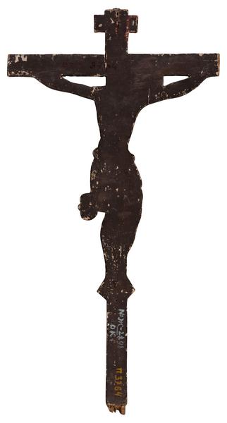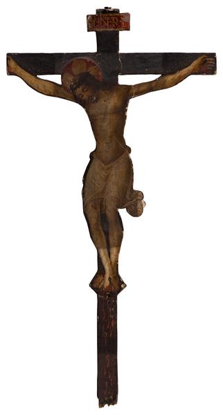 Зображення розп’яття було важливою частиною декоративного убрання храмів. Часом вживалась назва «crucifix» від лат. cruci fixus – «прибитий до хреста». На картині відтворено розп’ятого Ісуса. На рамені хреста на червоному фоні золотим напис: «I.N.R.I.». Особливо натуралістично зображені страждання і рани розп’ятого Христа.