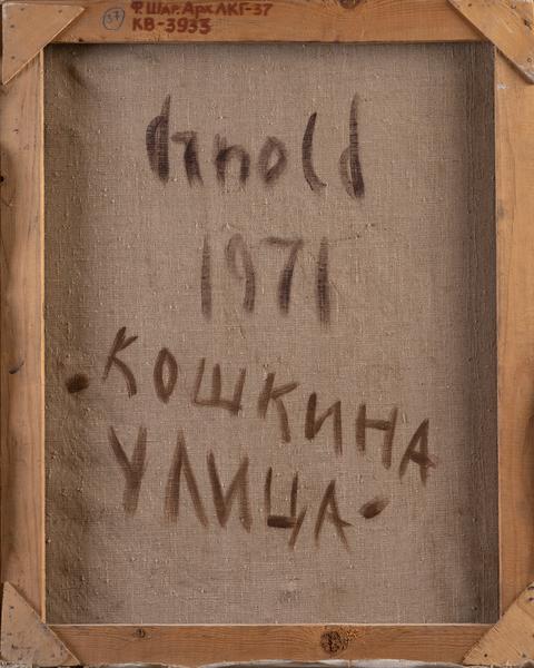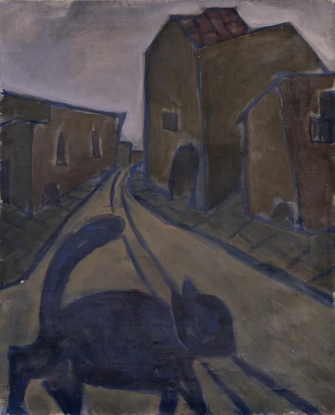 На вертикальному полотні зображено урбаністичний пейзаж з декількома будинками старої забудови. На передньому плані стилізований силует свійської кішки у профіль. Гама змішана, на об’єктах та фігурі тварини є активні контури майже бразолійного кольору. Встановити точне розташування цього фрагменту міста складно з огляду на трансформації забудови, однак вірогідно це колишній маршрут курсування трамвая №10 у Львові (неподалік Львівського національного літературно-меморіального музею Івана Франка). Стилістика роботи суголосна модерністичним практикам Натана Альтмана, Наталії Ґеркен-Русової, Марселя Дюшана та Шолома Шварца.
