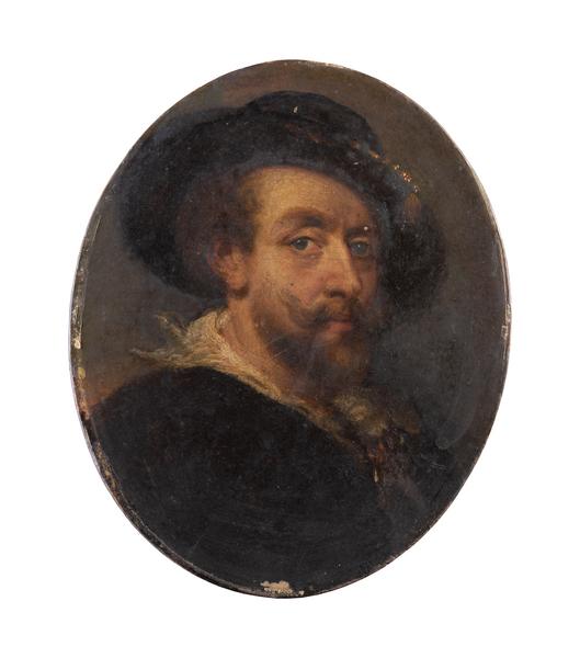 На овальному оливковому фоні зображений повернений у три чверті вправо чоловік з бородою і вусами, підкрученими догори. Його погляд звернений на глядача. Чоловік одягнений у темне вбрання з білим комірцем, на голові широкий чорний капелюх. Пітер Пауль Рубенс, один із видатних фламандських художників XVII століття, був знаковою фігурою в королівських дворах і мистецьких центрах Нідерландів, а також успішним дипломатом та ученим. Він спеціалізувався на створенні вівтарних образів, історичних картин, портретів і пейзажів. Унікальний стиль митця мав естетику бароко. Навчаючись в Антверпені, Рубенс здійснив подорож до Італії 1600 року, де він відкрив для себе роботи італійських художників: Рафаеля, Леонардо, Мікеланджело, Корреджо, Тінторетто, Караваджо та Аннібале Карраччі. Рубенс був надзвичайно експресивним, творчим та здібним художником – він створив велику майстерню, в якій працювали підмайстри та студенти, виготовляючи численні релігійні та історичні картини, міфологічні сцени та портрети. Протягом століть роботи Рубенса вплинули на багатьох молодих художників. Автопортрет митця, який він виконав 1623 року, часто повторювали послідовники й учні, намагаючись сягнути рівня великого майстра портрета. Художник створив його для Чарльза, принца Вельського (у майбутньому Карла I). Полотно досі зберігається у Королівській колекції.