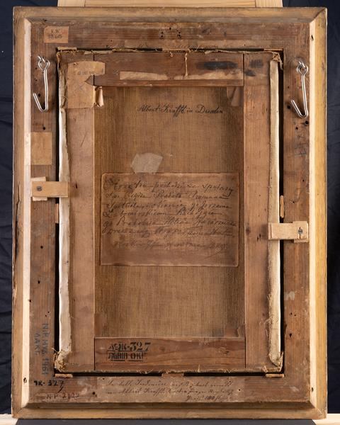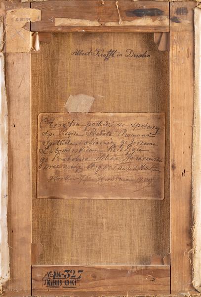 На картині зображені Діва Марія, Дитя Ісус та малий Іван Хреститель. Центральною фігурою роботи є Мадонна. Її обличчя розташоване на вершині пірамідальної композиції, а тіло заповнює більшу частину решти. Вона захищає Христа, що дивиться на неї, демонструючи почуття залежності та дитячої довіри. Вважається, що книга, яку тримає Марія, містить передбачення смерті Христа. Ісус стоїть біля її ніг праворуч. Іван Хреститель стоїть на одному коліні ліворуч від Марії й тримає правою рукою хрест. Навколо їхніх голів є слабкі німби. Фон картини – красивий сільський сад. Автор роботи створив репліку на картину «La Belle Jardiniere» – «Прекрасна садівниця», яка вважається однією із найвідоміших Мадонн італійського художника епохи Відродження Рафаеля. Картина також перегукується з просторовими пейзажами П’єтро Перуджіно. Він використовував популярну пірамідну композицію, поширену в мистецтві Високого Відродження, а також техніку сфумато. Ще одна особливість, яку можна побачити в «La Belle Jardiniere», – це надзвичайно ідеалізована краса та витонченість Мадонни, якою захоплювались послідовники Рафаеля. Немає точних даних щодо авторства картини, але вона надійшла до Галереї як робота Альбрехта Крафта. Художник використав уніфіковану натуралістичну композицію з насиченими яскравими кольорами та змішаними світлом і тінями, щоб створити реалістичну атмосферу.