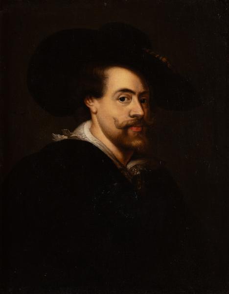Фламандський художник Пітер Пауль Рубенс створив багато полотен, у яких використовував власний автопортрет. На відміну від портретів інших людей, які митець писав у так званому бароковому стилі, відтворюючи персонажів у пишному багатому одязі з коштовними аксесуарами, автопортрети самого Рубенса більше схожі на побутові зображення. Ці роботи викликають асоціації з фотографіями, зробленими вдома за побутовими справами. Проте в них немає самолюбування або вихваляння будь-якими наявними чи уявними чеснотами. На картині зображено молодого чоловіка в чорному одязі з білим мереживним комірцем і крислатому капелюсі близького до одягу відтінку. Біла пляма комірця відтіняє рудизну його бороди. Головний убір позбавлений будь-яких прикрас на кшталт пір’я чи вишивок. Фон картини, як і одяг чоловіка, вирізняється простотою та приглушеністю фарб. Русе волосся портретованого практично приховане під його капелюхом, обличчя обрамляє витончена невелика борідка, пишність вусів приборкана перукарем. Автор змальовує чоловіка з високим лобом мислителя та подовженим носом благородної форми. Постать дивиться на глядача ясними темно-карими очима, в яких читається розум, освіченість та енергійність.