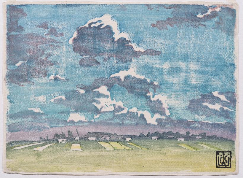 На гравюрі зображений літній пейзаж. Більшу частину композиції займає вкрите хмарами небо, під яким розкинулися зелені поля й українське село.