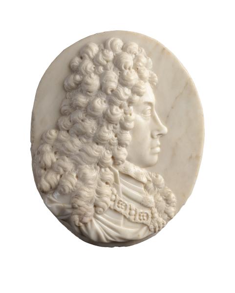 Овальна мармурова рельєфна пластина з погрудним зображенням чоловіка у перуці алонж. Чоловік, повернутий у профіль вправо, має тонкий кирпатий ніс, повні вуста, кругле підборіддя. Видно мереживний комір і частину ланцюга ордену Золотого руна.
