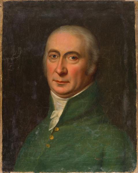Погрудний портрет чоловіка середнього віку в перуці. Портретований зображений на темному тлі в легкому півоберті вліво. Його погляд звернений на глядача. Чоловік одягнений у зелений камзол з золотими ґудзиками й високим коміром-стійкою. З-під коміра видно білу шовкову хустку, щільно обмотану навколо шиї та зав’язану невеликим бантом.