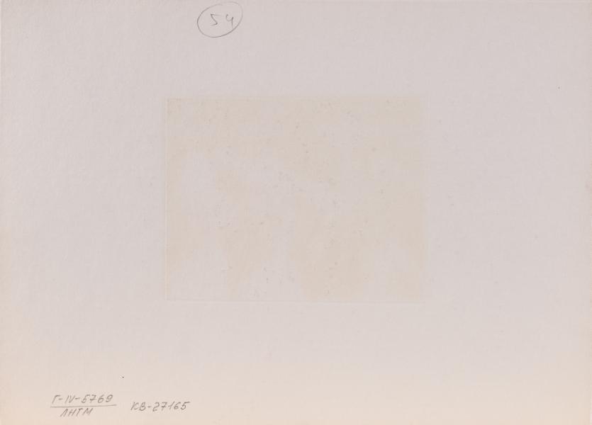 На передньому плані (розмір відбитка – 10 х 12.7 см) зліва погрудне зображення чоловіка у ¾ звороті вправо. Обличчя чоловіка подовгасте, з довгим вузьким носом, невеликими очима, вузьким ротом з опущеними кутиками. Справа від нього – дві оголені жінки, зображені зі спини нижче сідниць. Їх спини з численними складками, поморщені. На головах жінок хустки. Перед ними зображений стіл, на якому лежить жінка.