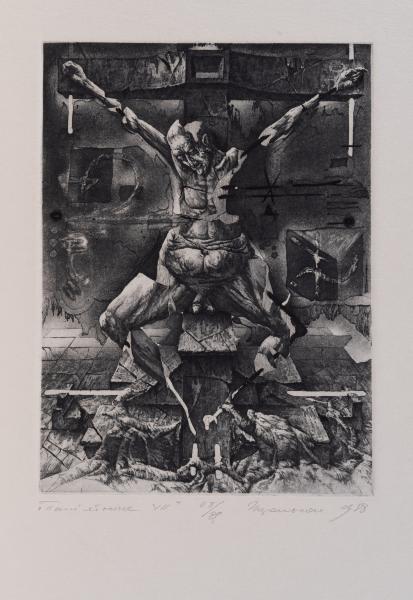У своїй готичній подобі такі гротески відображають людські вади у їхній апокаліптичній формі – їхню справжню форму, що ховається за видимим, одкровення прихованого людського гріха, яким він постане у Судний день. Чи є видіння Подольчака у цьому фантастичному просторі репресій так само апокаліптичними, чи, можливо, вони сигналізують, що політичний острах перед орвелівськими кошмарами перетворюється на екстаз?» (Едвард Коллесс, «Есе». До каталогу виставки «Igor Podolchak. Ukrainian Printmaker», 1991).