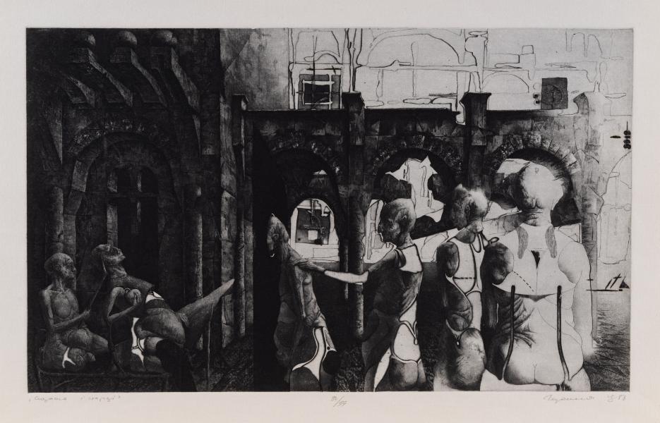 У своїй готичній подобі такі гротески відображають людські вади у їхній апокаліптичній формі – їхню справжню форму, що ховається за видимим, одкровення прихованого людського гріха, яким він постане у Судний день. Чи є видіння Подольчака у цьому фантастичному просторі репресій так само апокаліптичними, чи, можливо, вони сигналізують, що політичний острах перед орвелівськими кошмарами перетворюється на екстаз?» (Едвард Коллесс, «Есе». До каталогу виставки «Igor Podolchak. Ukrainian Printmaker», 1991).