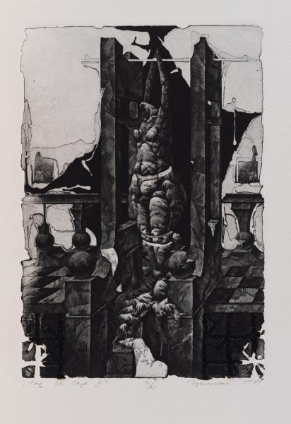 У своїй готичній подобі такі гротески відображають людські вади у їхній апокаліптичній формі – їхню справжню форму, що ховається за видимим, одкровення прихованого людського гріха, яким він постане у Судний день. Чи є видіння Подольчака у цьому фантастичному просторі репресій так само апокаліптичними, чи, можливо, вони сигналізують, що політичний острах перед орвелівськими кошмарами перетворюється на екстаз?» (Едвард Коллесс, «Есе». До каталогу виставки «Igor Podolchak. Ukrainian Printmaker», 1991).