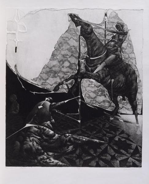 Посилаючись на чудовиськ Ієроніма Босха, Отто Дікса, Макса Ернста та Сальвадора Далі, Подольчак звертається до бурхливої, чуттєвої та збоченої сили метаморфози. В цій саркастичній фантазії образи охоплює своєрідна істерія: двозначний стан, що вимагає як інтенсивності, так і відволікання. Через цю двозначність ми можемо сплутати істерію з екстазом: психоаналітики припускають, що коли істерія є хворобою, екстаз вважається станом благодаті. Чутливий до цієї глибинної схожості митець може розглядати істерію як безсоромний бік екстазу. Ці істоти непристойні не тільки тому, що комічно і жахливо напружуються або хитаються у спастичних позах; у вічних муках свого неминучого герметичного суспільства вони також калічать наше власне почуття морального розрізнення і судження, змішуючи світи живих і мертвих, жертв і господарів, врятованих і приречених.