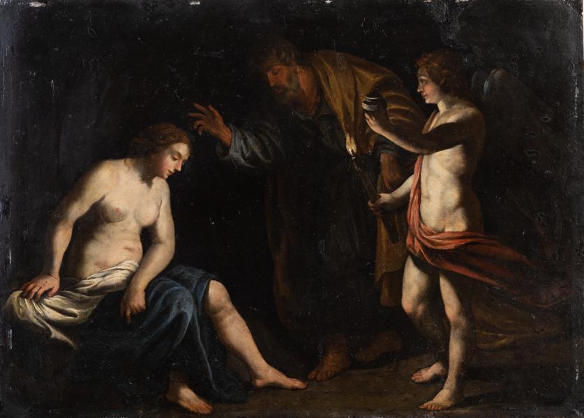 Гвідо Рені – італійський художник епохи бароко. Народився 4 листопада 1575 року в Болоньї, Італія. У 9 років він вже навчався у болонській студії голландського художника Деніса Кальверта. Під час навчання Рені жив і в Римі, і в Неаполі, та згодом повернувся до рідної Болоньї. Митець найбільш відомий своїми замовними фресками в каплицях і олійними картинами біблійних та міфологічних сцен. У своїх роботах Рені використовував яскраві тони та плавні, ідеалізовані форми. Певний час художник захоплювався караваджистською манерою живопису («Розп’яття Святого Петра», 1603, Пінакотека, Ватикан), але Рафаель і античність були головним натхненням для його витонченого класичного стилю, як це видно з найвідомішої роботи художника «Аврора» (1614, плафон палацу Роспільозі, Рим) – чарівно красивої фрески на стелі, написаної для кардинала Боргезе. Рені помер 18 серпня 1642 року в Болоньї, Італія. Сьогодні твори митця зберігаються в колекціях Інституту мистецтв (Чикаго), музею Ґетті (Лос-Анджелес), Лувру (Париж), Музеї мистецтва Метрополітен (Нью-Йорк), Національної галереї (Лондон) тощо.