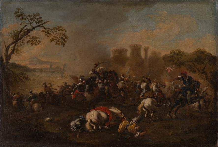 Сцени з битвами мали значний попит серед колекціонерів із різних соціальних верств. У них підкреслювалася значущість героїчних вчинків, які демонстрували патріотизм і військову звитягу. Композиція картини цікава, адже Парроселю вдалося створити відчуття руху через розміщення персонажів та елементів у сцені. Персонажі розташовані в різних площинах полотна, створюючи відчуття глибини та перспективи. Художник використав палітру темних насичених тонів для створення напруженої та драматичної атмосфери. У творі переважають червоні, вохристі та коричневі кольори, що свідчить про напруженість битви та хаос, який панує на полі бою. У колекції Львівської національної галереї мистецтв імені Б.Г. Возницького зберігається парний цьому твір – «Битва І».