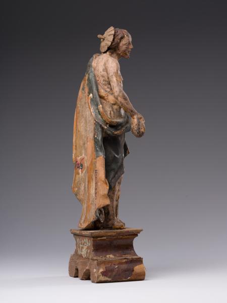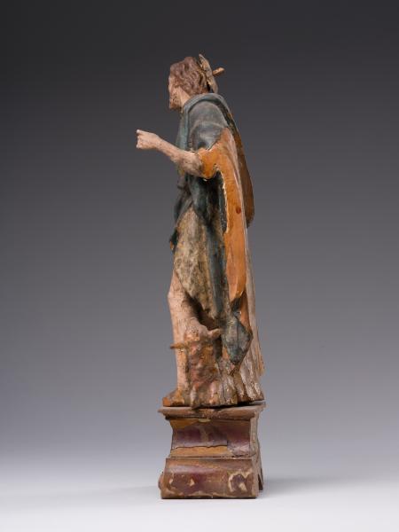 Символічні зображення Ісуса мали на меті розкрити різні сторони його земного служіння і вчення. Одне із них – Спаситель в образі Доброго Пастиря, з вівцею на плечах і з вівцями довкола, яке з III–V ст. трапляється у розписах римських катакомб, мозаїках базилік і гробниць, рельєфах саркофагів, на надгробних стелах, у формі круглих скульптур. Пізньоантичний буколічний образ пастуха і гармонійної природи отримав в християнському мистецтві новий зміст. Пастух із вівцею став символом божественного людинолюбства й зкорелював із темою Хрещення. Ягня на руках означає, що Ісус піклується про своїх дітей так само ніжно і дбайливо, як пастух про беззахисних ягнят. Постать Христа зі збірки ЛНГМ ім. Б.Г. Возницького роботи невідомого майстра, попри традиційну іконографію, згідно з якою Ісуса зображали безбородим юнаком, позначено аскетизмом і суворістю рис. Ягня розташоване біля ніг Спасителя. Інше, нині втрачене, ймовірно було на руках.