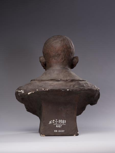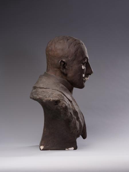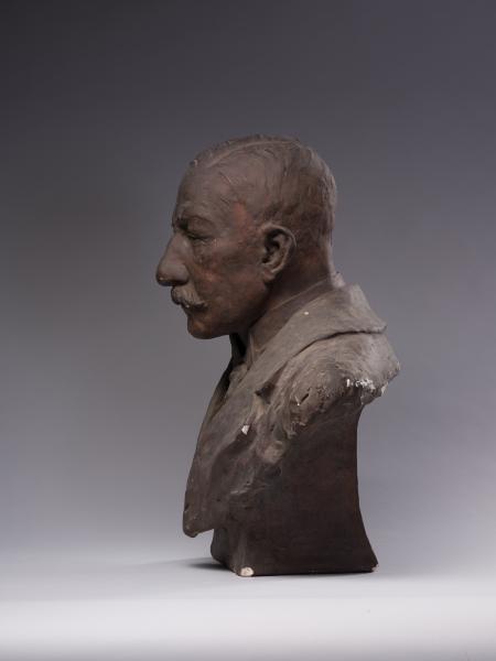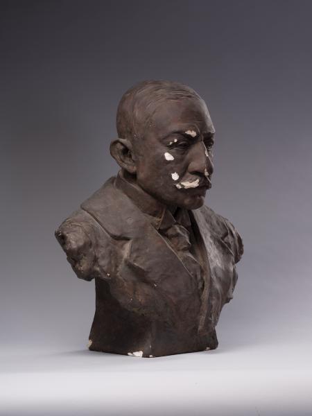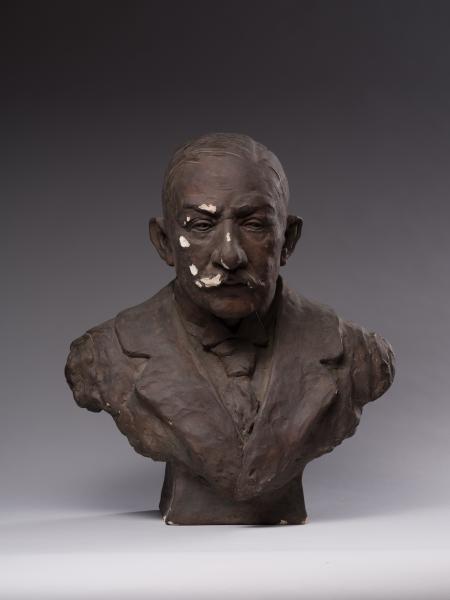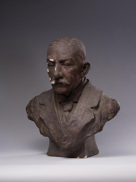 «Погруддя чоловіка» (1924) – один із творів, що засвідчують тенденції неокласицизму та «академічного реалізму» у творчості Ю. Смольки другої половини 1920-х рр. На відміну від більш раннього «Погруддя Емануеля Махека» (1912), зображення позначене класичною врівноваженістю й завершеністю моделювання форм. Спокою і життєвої втоми сповнене ретельно відтворене немолоде одутле обличчя з піднесеними дугами брів, великим носом і самозаглибленим поглядом запалих очей. Високий соціальний статус портретованого підкреслюють зачіска, краватка, костюм. Відлунням характерного для Ю. Смольки імпресіоністичного формотворення сприймається енергійна ліпка рамен.
