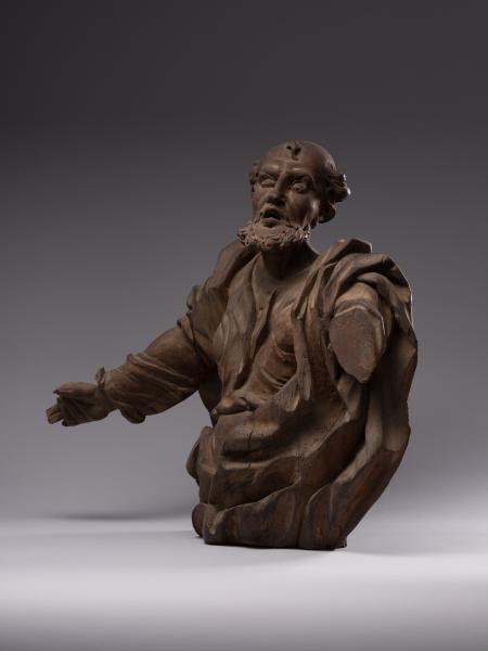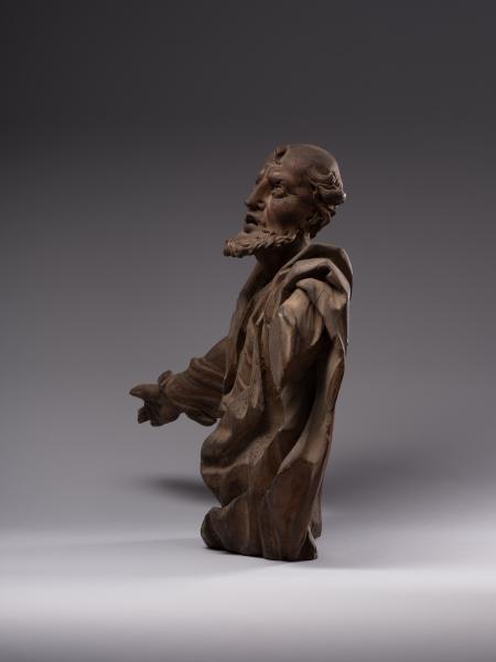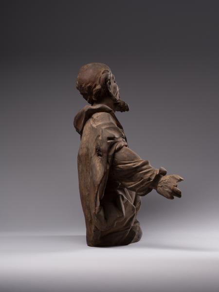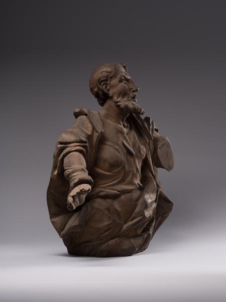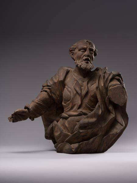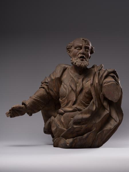 Апостоли (від гр. ἀπόστολος – «посланець», «проповідник») – учні та послідовники Ісуса Христа, проповідники Євангелія. У вузькому значенні «апостолами» називають дванадцять безпосередніх учнів Христа, у широкому – сімдесят сподвижників Церкви, обраних Ісусом. Вирізняють також апостольство святого Павла, покликаного до служіння вже після Вознесіння Спасителя. Зображення апостола зі збірки ЛНГМ ім. Б.Г. Возницького позначено бароковою стилістикою, що засвідчують експресія піднесеного до неба обличчя, динаміка драперій та активна взаємодія із простором скульптурних форм.