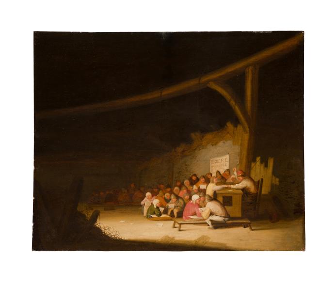 Картина «Сільська школа», що вірогідно належить пензлю Бартоломеуса Моленара, яскраво відтворює освітній процес. У старій занедбаній клуні, яку пристосували під школу, змальоване згромадження селян різного віку, які вчаться читати й писати. Учні сидять на довгих лавах, дехто на підлозі, тримаючи списані сторінки. На стіні – великий білий аркуш з текстом. Заголовок «BOERE» (з нідерландської – «фермер») вказує на тему уроку. Виділена яскравим світлом частина твору асоціюється з променем знань, який пробиває темряву невігластва. Світло вихоплює нечіткі обличчя людей, на задньому плані просто постатей, чим підкреслює масовий характер такого дійства. Але наука не буває «без бука», тож в центрі картини учитель різкою карає учня за непослух, неуважність чи нестаранність.