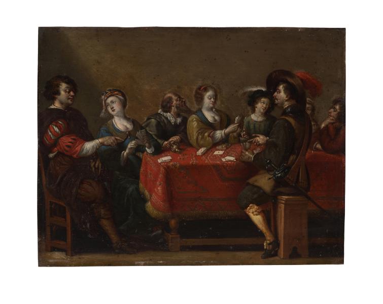 На картині майже весь простір заповнений багатофігурною композицією, яка зображає гру в карти. За столом восьмеро осіб. Одні беруть участь у грі, інші спостерігають. Поруч з чоловіками – жінки, чим підкреслено демократичність такої забави. Пишний одяг, якісне взуття, капелюхи, зброя портретованих свідчать про статки голландських буржуа. На столі, вкритому яскраво-червоним обрусом, карти. Азартна напруженість гравців фіксує вирішальну мить гри. Гра у карти потрапила до Європи у XIV ст. з Китаю і максимально поширилася країнами Європи у XVI ст. Відтоді вона стала популярним сюжетом у мистецтві. Малі за розмірами, різножанрові реалістичні картини, що передавали моралізаторські настанови та показували прекрасне в повсякденності, представляючи мешканців країни, були дуже популярними у XVII ст. Палітра творів «малих голландців» вільна і розкута. Фіксація кожної миті життя, навколишнього світу, природи, міст та сіл, морських пейзажів, квіткових букетів і дарів природи, а ще возвеличення буденної праці та розваг голландців – головні риси творів художників цього періоду.