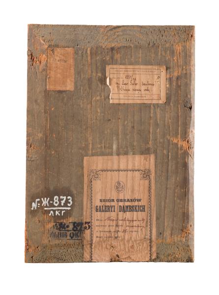 Перед будинком, на подвір’ї біля криниці, змальована нахилена юнка. Її освітлене обличчя виділяється на темному тлі твору. Відкритим веселим поглядом вона дивиться на глядача. Легкий рум’янець обрамлює її лице. Волосся акуратно підібране. Білий чепчик гармоніює з вибіленим мереживним комірцем і теплим вохристим кольором блузи. Дівчина зачерпує глеком воду з криниці. На лаві відблискують помиті червоні помідори, огірки, капуста, ріпа. На землі біля лавки – біло-зелені паростки спаржі та корені петрушки. На підмурівку відтворено вазон із яскраво-червоними квітами, на фоні – контури дерева та відкрите аркове вікно. Картина вірогідно належить пензлю Доменiкуса ван Тола, представника так званих фійншільдерів (буквально «прекрасні художники») – лейденських художників, які у період з 1630 до 1710 року прагнули якомога природніше відтворити реальність у своїх ретельно виконаних, часто невеликих за масштабом роботах. У XVII ст. цей термін розрізняв художників і малярів, а вже у XIX ст. став позначати таких художників як Герріт Доу та його послідовники в Лейдені. Всі вони є представниками голландського бароко. Роботи їх вирізняються увагою до деталей, вишуканою технікою, гладкою поверхнею без мазків, що наближає їх до робіт нідерландських художників. Фійншильдери найбільш відомі жанровими сценами, що показують повсякденне життя, нічними сюжетами при свічках і «нішевими» картинами trompe-l'œil (фр. «обдурити око», високореалістичні оптичні ілюзії).