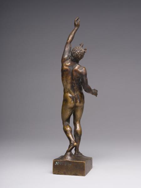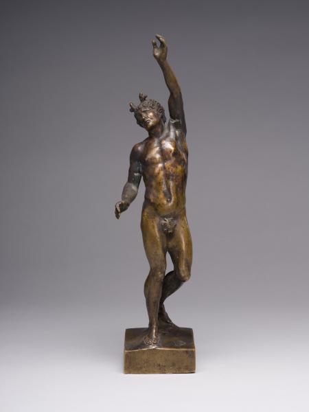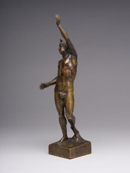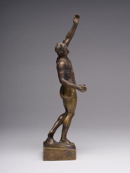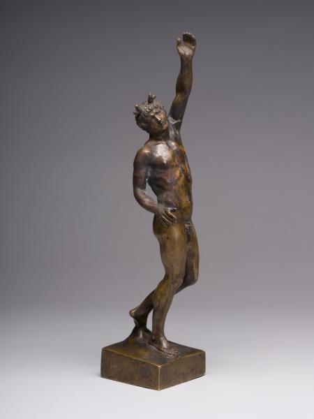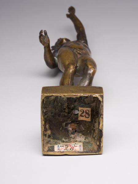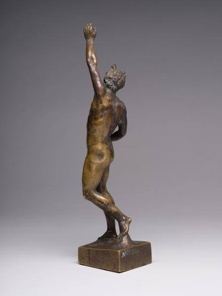 У невеликій бронзовій статуетці автор звертається до образу античного персонажа – мисливця Актеона, який згідно з «Метаморфозами» Овідія під час полювання побачив богиню Діану (Артеміду), що разом із німфами купалася у річці. Розгнівана богиня перетворила юнака на оленя, і його розірвали власні пси. Робота виконана під впливом творчості Бенвенуто Челліні, зокрема його видатного «Персея з головою Медузи» (1554). Автор цього твору лише у невеликих деталях – маленьких оленячих ріжках на голові персонажа – конкретизує образ. Основним авторським завданням було передати пластику оголеного тіла, яке можна було б оглядати з усіх сторін. Опорна права нога та зігнута в коліні ліва повторюють ті ж елементи у скульптурі Б. Челліні. Близькі за аналогією трактування опущеної вниз та зігнутої в лікті правої руки та лівиці, високо піднятої догори. Натомість голова і торс Актеона обернені вліво, від чого фігура стає більш динамічною порівняно зі статуєю Персея. Скульптура відлита разом із невеликим квадратним подіумом.