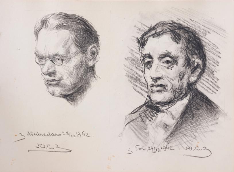 Дві рисункові копії, виконані Юліаном Зайцем, є реалістичним портретом чоловіка в окулярах, можливо Еріка Ліпінського (1908–1991) та портретом чоловіка з темною короткою зачіскою роботи Франсіско Гої. Попри відмінності у часі створення оригіналів і художніх манерах авторів, у копіях збережена виразна індивідуальність кожного образу та уважність до пластичної побудови форми. Портрет чоловіка в окулярах вирізняється точністю лінійної побудови та спокійною врівноваженістю композиції. У зображенні переважає стримане, але виразне штрихування, що моделює об’єм обличчя, передає характерні риси, зокрема чіткий овал, рішучий погляд, акцент на тонких деталях оправи окулярів. Митець делікатно зберігає індивідуальність моделі, підкреслює характер постаті. Портрет чоловіка з темною короткою зачіскою, створений Ф. Гоєю, у копії Ю. Зайця зберіг свій виразний емоційний лад. М’які переходи світлотіні підкреслюють пластичність обличчя, а глибокий, уважний погляд, спрямований повз глядача, надає зображенню внутрішньої напруги. Лінії плечового поясу виконані узагальнено, що дозволяє зосередитися на психологічній глибині портретованого. Завдяки ретельній роботі з формою та світлотінню Ю. Заяць зумів не лише точно передати стилістику кожного оригіналу, а й виявити їхні суттєві відмінності: інтелектуальну зосередженість модерного портрета та емоційну насиченість образу в дусі іспанського майстра.