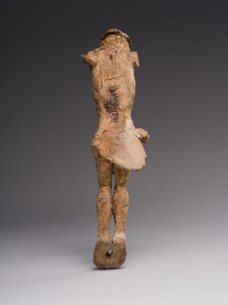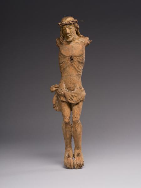 Наслідуючи візантійську іконографію, Розп’яття прибите до хреста чотирма цвяхами. Христа зображено в момент смерті, його голова ледь нахилена до правого плеча, очі заплющенні, обличчя виражає страждання і внутрішню скорботу. Голову увінчує символ мучеництва – терновий вінок. На витягнутій, дещо непропорційній фігурі Христа майстер намагається передати фізичне виснаження. Виразно підкреслює ребра та запалу черевну порожнину, відтворивши фізичні страждання. Ноги зведені разом, пальці стоп промодельовані з увагою до деталей. Пов’язка, що прикриває стегна, змодельована доволі схематично, але з відчуттям руху. Скульптура є зразком народної сакральної пластики, де радше прагнули не до ідеального відтворення анатомічних ознак, а до передачі духовного змісту.