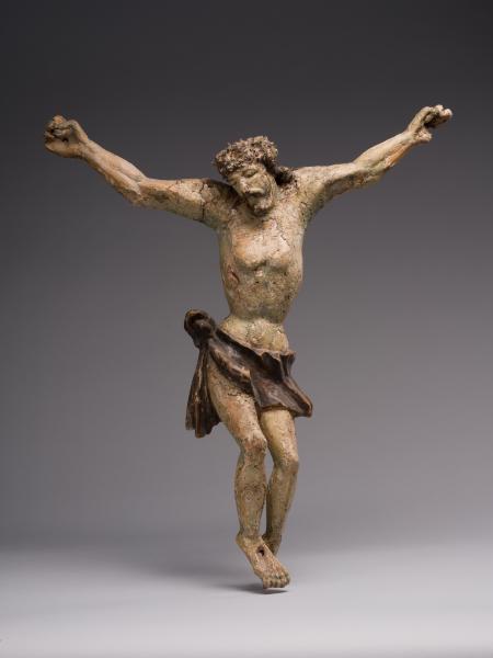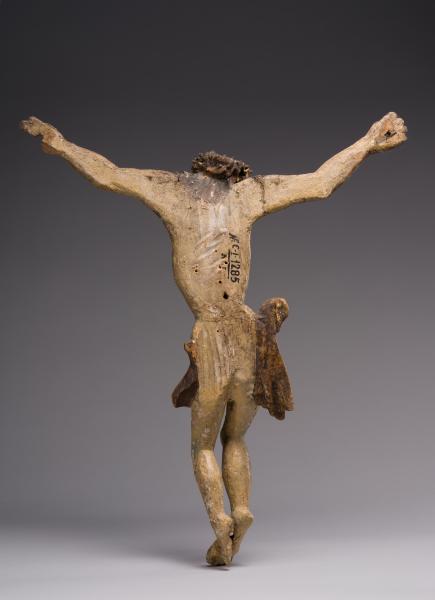 Образ Розп’ятого Христа вирізьблений у традиціях західної іконографії. Спаситель представлений в момент смерті на хресті: голова схилена, очі заплющені, тіло видовжене у характерному вигині. Фігуру Христа передано узагальнено, без надмірного натуралізму, проте з акцентом на страждання та виснаження. Вигин корпусу, асиметрія рук та ніг додають композиції драматичної напруги. Майстер відтворює анатомічні особливості людської фігури, в образі простежується напруга піднятої грудної клітки, видовжений торс з чітко вираженою талією, пророблені м’язи рук та ніг. Руки Христа широко розкинуті, без крайнього напруження, ноги зігнуті, стопи схрещені – все створює драматичний ефект і візуальний ритм. Спокійний вираз стомленого, фактурно проробленого обличчя у трактуванні рис створює враження щирості та глибокої духовності. Все в образі підкреслює завершення земних страждань. Оголене тіло прикриває перізома на стегнах, подана об’ємно, що створює враження пластичності та реалістичності. Попри драматичність моменту, образ сповнений тиші та примирення. Розп’яття уособлює центральну ідею християнської віри – жертовність Христа заради спасіння людства.