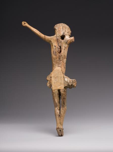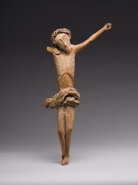 Різьблене дерев’яне Розп’яття відтворене в доволі узагальненій манері, без дрібної деталізації, але з акцентом на основні символічні ознаки. Злегка видовжена фігура Христа непропорційна, що властиво багатьом народним роботам. Тонкі руки та ноги, вузькі плечі, коротка шия, випнута грудна клітка – все подано узагальнено, без ретельної анатомічного опрацювання. Голова Спасителя нахилена вправо та вниз, що передає момент смерті та смирення, який підкреслюють заплющені очі. Характерний терновий вінок вирізьблений стилізовано, акцентує на стражданні. Елемент декоративності в скульптурному зображенні створює коротка перизома на стегнах, змодельована неглибокими рельєфними складками. Загальний образ Розп’яття драматичний та водночас аскетичний, позбавлений зайвої емоційності. Робота, попри значні втрати та пошкодження, зберігає художню та історичну цінність, адже відображає релігійне світосприйняття певної епохи. Розп’яття є виразним прикладом роботи, де основним є символічна передача образу Христа, а не реалістична точність.