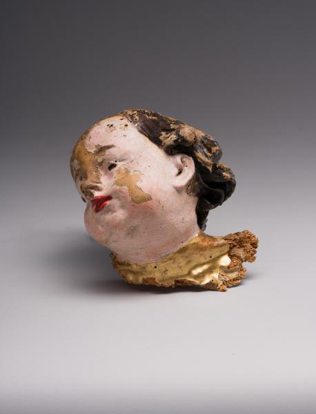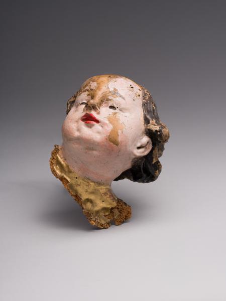 Скульптурне зображення голівки ангела характеризується делікатним опрацюванням деталей та багатою поліхромією. Робота вирізняється поєднанням реалістичних рис з умовною стилізацією. Вираз фактурно проробленого обличчя херувима зосереджений, у ньому відчутне духовне піднесення, а поліхромія надає зображенню більшої виразності та життєподібності. Майстер прагне відтворити не лише зовнішню красу, а й передати внутрішній світ – зображення має злегка ідеалізований вигляд, що підкреслює приналежність до сакрального світу. Майстер особливу увагу приділив плавності контурів та пропорціям, завдяки чому образ живий та виразний. Об’єм силуету голівки ангела передано м’яко, без різких контрастів, що створює відчуття пластичної ніжності. Ледь піднята голова з виразом внутрішньої експресії на обличчі відображає духовну зосередженість.