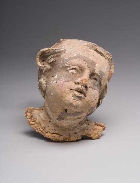 Скульптурне зображення голівки ангела має значні втрати фарбового шару й ґрунту, видно фактуру деревини на великих ділянках. Риси обличчя потрактовані дещо узагальнено, з незначною асиметрією. Проте в роботі проявляється характерна для бароко експресивність – ледь розтулений рот, живий погляд. Певного емоційного забарвлення образу додає незначний нахил голови ліворуч та легкі хвильки короткого волосся навколо округлого обличчя. У зображенні голівки ангела простежується прагнення скульптора оживити образ, надати йому людських, майже дитячих рис, щоб відтворити атмосферу радості, небесного світла та божественного захисту. Попри значні пошкодження, різьблена голівка показує довгу історію побутування та сакральну значущість у первісному середовищі.