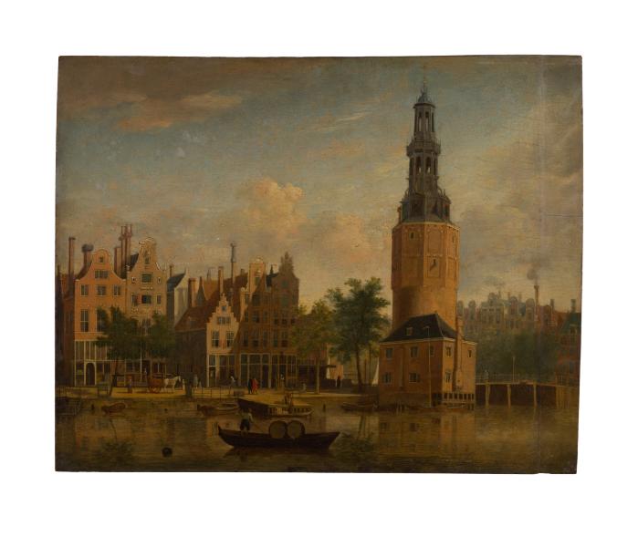 На картині відтворено міське життя біля причалу в Амстердамі XVII століття. Домінантою архітектурного ландшафту є башта Монтелбансторен, зведена в 1512 році для захисту міста і вкрай популярна серед голландських художників XVII століття. На передньому плані зображено чоловіка, який перевозить бочки по каналу Аудесханс, а позаду біля причалу – пришвартовані човни. На вулиці перед будинками розгорнуто сцени буденного життя амстердамських міщан, постаті котрих, згідно з узвичаєним методом роботи, домальовувалися після того, як більша частина картини була завершена, почасти – іншими майстрами.