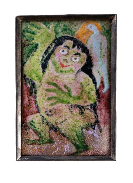 Із серії «Гуцульські народні повір’я». На мідній пластині, по центру на зелено-охристому фоні, зображена величезна жаба з людським обличчям. Великі очі, кирпатий ніс, посмішка на устах. Чорне довге волосся спадає на плечі. За нею праворуч у верхньому куті видно людську постать.
