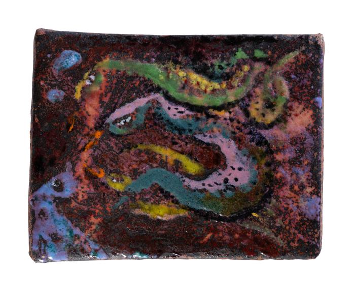 Із серії «Гуцульські народні повір’я». На мідній пластині зображено трьох вужів, які звиваються по всій площині.