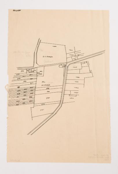 The site plan shows where a new brick church designed by Yevhen Nahirnyi in 1938 was to be built. The project was never carried out (Lev Kh., Slobodian V., Filevych N. 100 Churches of the Nahirnyi family. Part Two: Churches of Yevhen Nahirnyi. Lviv, 2015. P. 126).