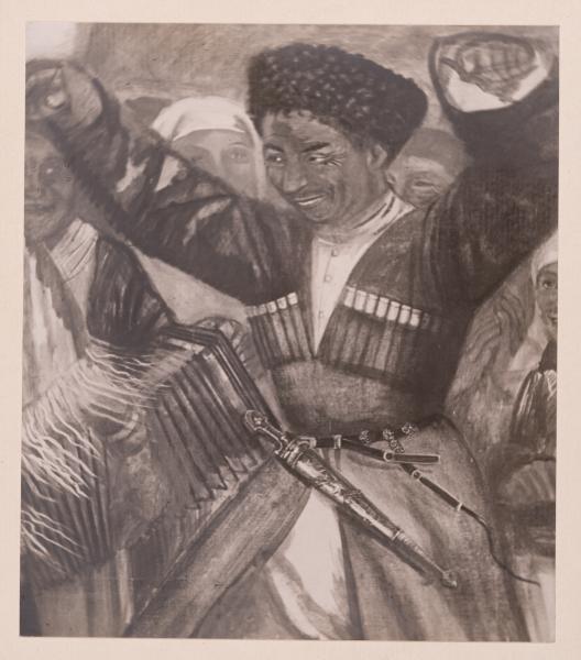 - Mykhailo Lezviiev. Dancing Kabardian. Detail of the "Holiday in Akbash" Panel