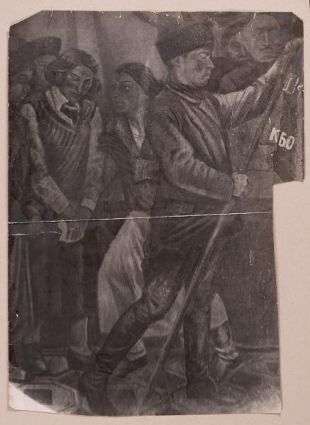 - Mykhailo Lezviiev. Fragment of the "Handing Over the Flag to the Winner of the Social Competition in Education" Mural
