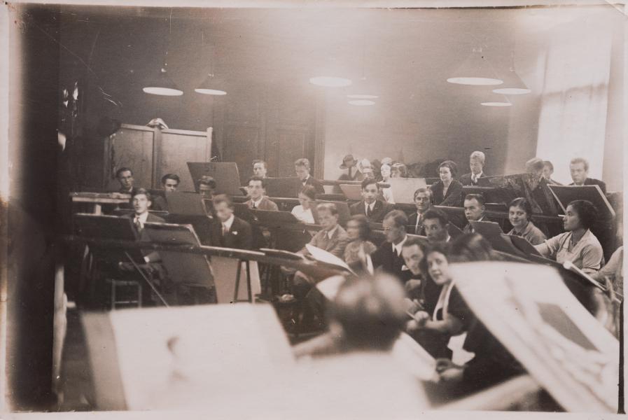 Mykhailo Lezviiev. Fragment of the "Handing Over the Flag to the Winner of the Social Competition in Education" Mural