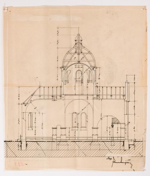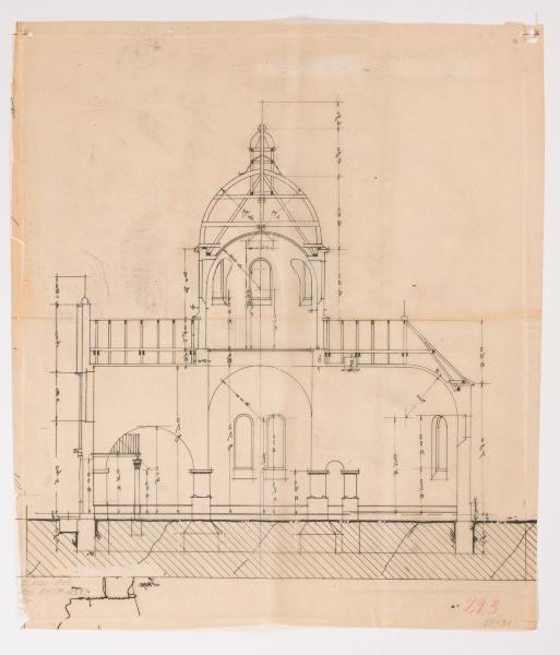 Зображений поздовжній розріз фасад із проєкту церкви Св. Миколая, що був виконаний 1933 року. Це базиліка з трьома півциркульними абсидами, вираженим трансептом, одноверха. Вирішена у стриманому стилі ззовні, лише її головний фасад завершений криволінійними артдековими причілками, у формі яких відлунюють барокові впливи. Артдековими є й низькі колони в інтер’єрі, на які опираються півциркульні арки. Над середохрестям здіймається півсферична баня. Будівля була зведена у 1930-х роках, однак занепала у 1940-х (Лев Х., Слободян В., Філевич Н. 100 церков Нагірних. Частина друга: Церкви Євгена Нагірного. Львів, 2015. С. 127).