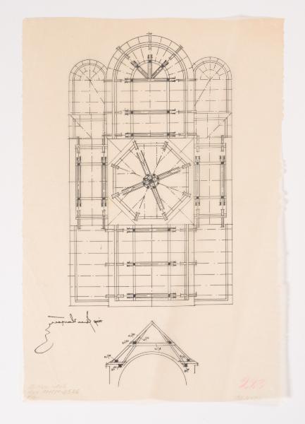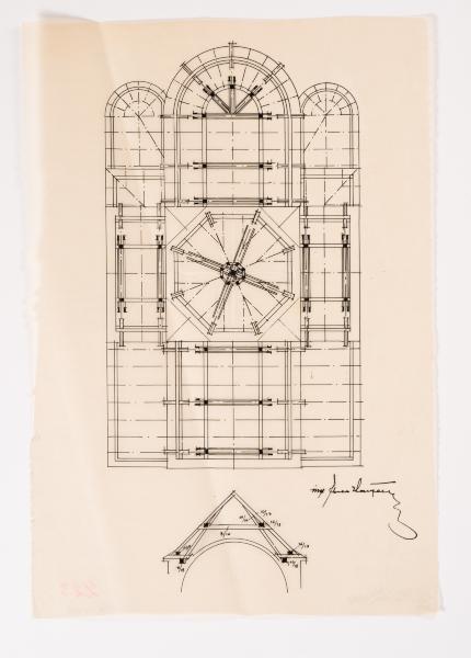 Цей план даху не підписаний, однак, ймовірно, він є частиною проєкту церкви для села Радохинці. Збігається загальне планування будівлі, а також наявність восьмигранної бані над середохрестям.